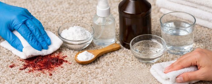 اگر خون قبلاً خشک شده باشد، فرآیند تمیز کردن بیشتر طول می کشد. ابتدا باید پوسته را با یک برس خشک به دقت نرم کنید و باقی مانده را با جاروبرقی تمیز کنید. پس از این اعمال می شود پاک کننده آنزیم یا محلولی از مواد شوینده ظرفشویی بدون سفید کننده. مهم است که اطمینان حاصل شود که فرش برای مدت طولانی خیس نمی شود، زیرا این امر می تواند منجر به کپک زدن یا خراب شدن پشتی شود.
